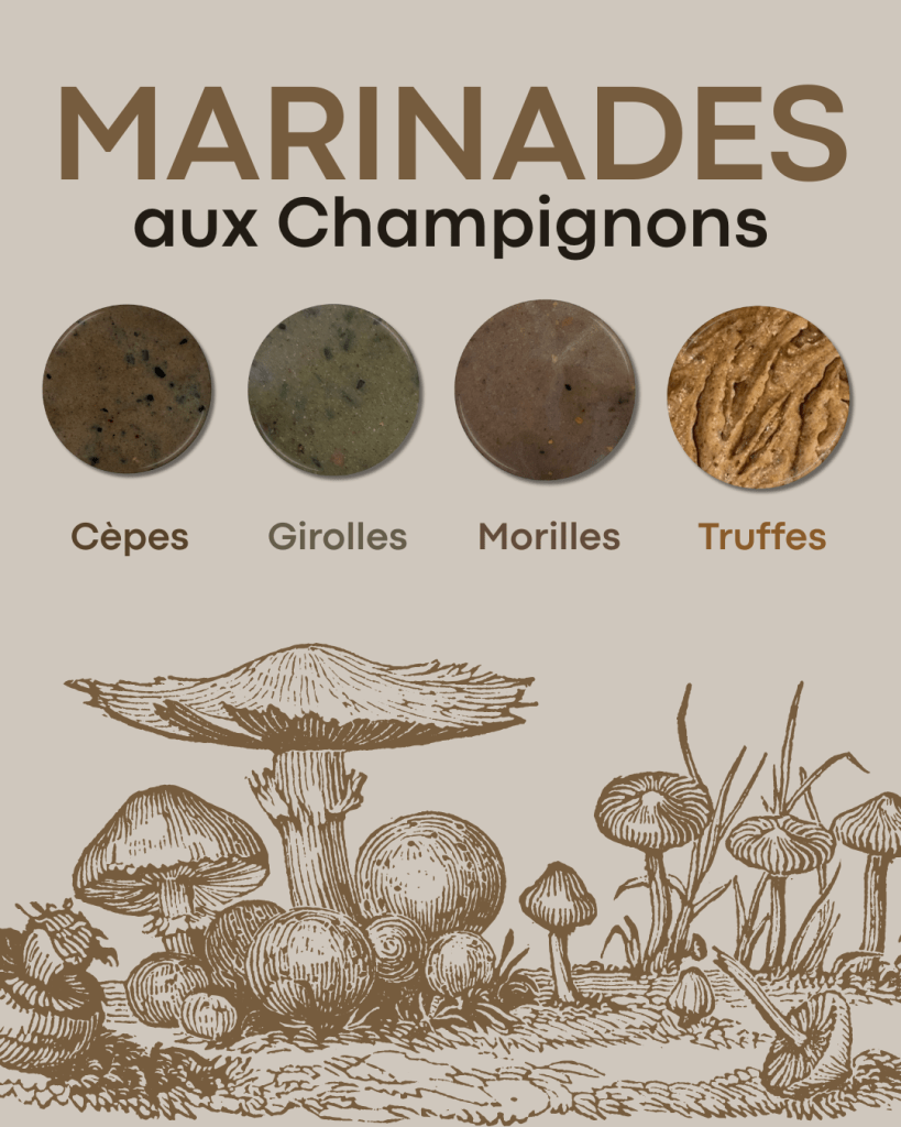 Marinades (28 saveurs différentes), mélanges d’épices pour préparations charcutières (saucisses, merguez, saucisson, chorizo, soubressade, kefta, etc…), épices classiques (piment doux, piment fort, cumin, sel, poivre, conservateur, etc..)