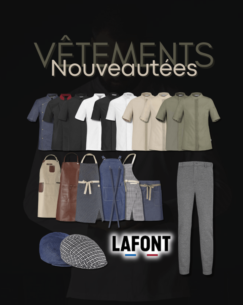 Coutellerie, plats, ficelles, étiquettes de prix, corbeilles, paniers, piques à brochettes, tabliers et vêtements dédiés aux professionnels, rouleaux thermiques pour CB, balances et caisses enregistreuses.