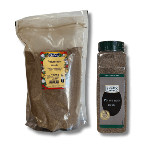 Gros sel sac de 5kg sac de 25kgSel fin sac de 5kg sac de 25kgAil semoule sac de 1kgboite litre de 600gHerbes de provence sac de 1kgboite litre de 200gOignon déshydraté sac de 900gOignon frit sac de 1kgOignon lanière sac de 1kgPersil déshydraté sac de 50gLaurier feuille sac de 500gBasilic boite litre de 150gEstragon boite litre de 90gThym boite litre de 175gCiboulette boite litre de 80gOrigan boite litre de 85gGingembre moulu boite litre de 500gPoivre blanc boite litre de 600gPoivre noir moulu sac de 1kg boite litre de 500gPoivre noir concassé boite litre de 525gPoivre noir grain boite litre de 500gPiment fort moulu boite litre de 500gPiment doux sac de 1kgboite litre de 500gPaprika fumé boite litre de 500gPaprika boite litre de 500gCurry moulu boite litre de 500gClou de girofle boite litre de 350gMuscade boite litre de 500gCèpes / Bolets boite de 500gCèpes choix boite litre 500gGirolles boite de 500gMorilles traiteur boite de 400gMélange forestier boite litre 500g